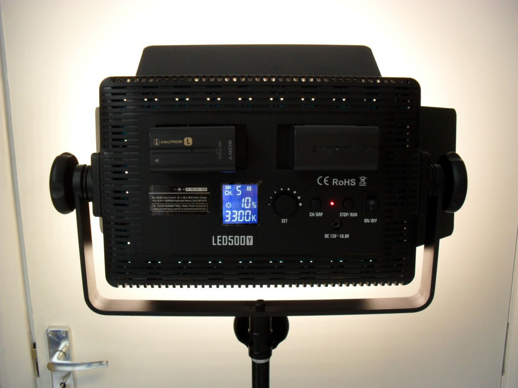 500 LED Panel with Remote EX DEMO 500 Led Panel 3200K, Diffuser, Lux 2900 (1m) Remote Control, supplied with power supply, takes NP-F batteries, 2.1m Tripod stand.