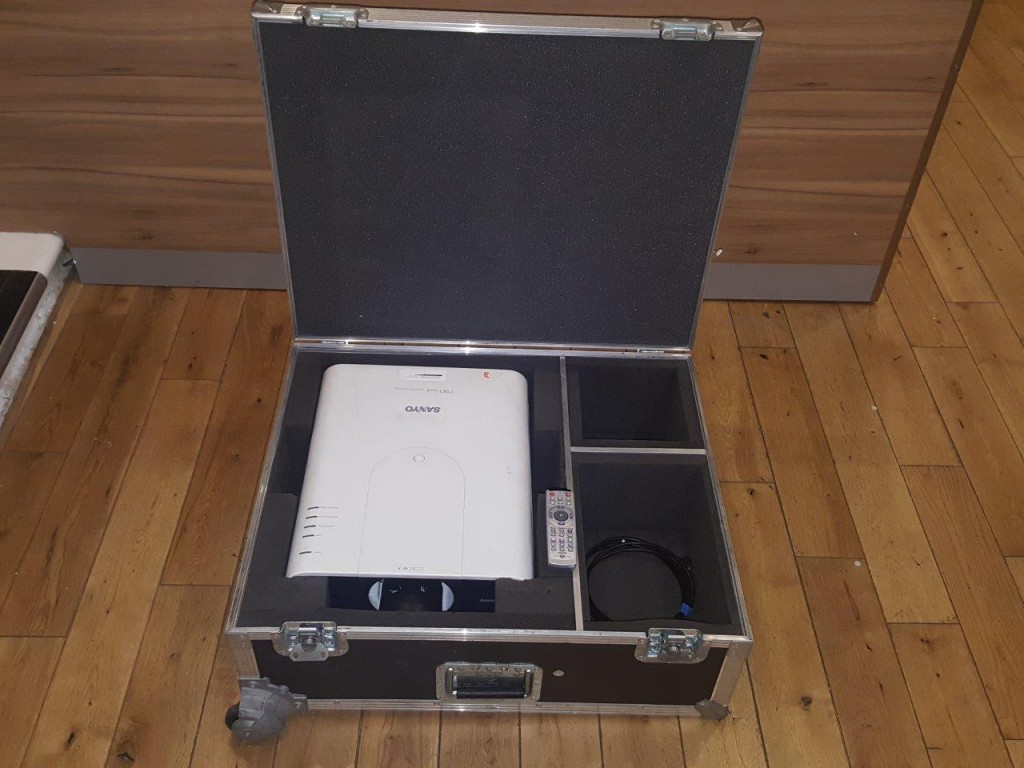 Sanyo PLC-XP100L Lumens Projector in wheeled flight case