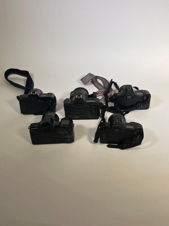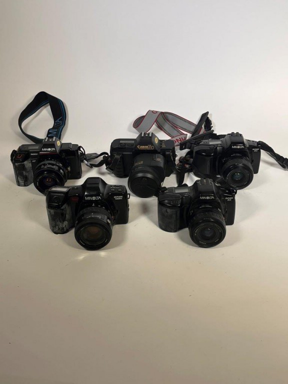 Canon T80 camera with canon 35-70 F:3.5-4.5 lens - Minolta Dynax 3xi camera with minolta 35-80mm F:4(22)-5.6 power zoom lens - with Minolta 35-80mm F:4(22)-5.6 zoom lens - Minolta Dynax 7000i camera with Minolta 35-105mm F:3.5 (22)-4.5 - Minolta 5000 AF camera with Minolta 35-70mm F:4 (22) lens