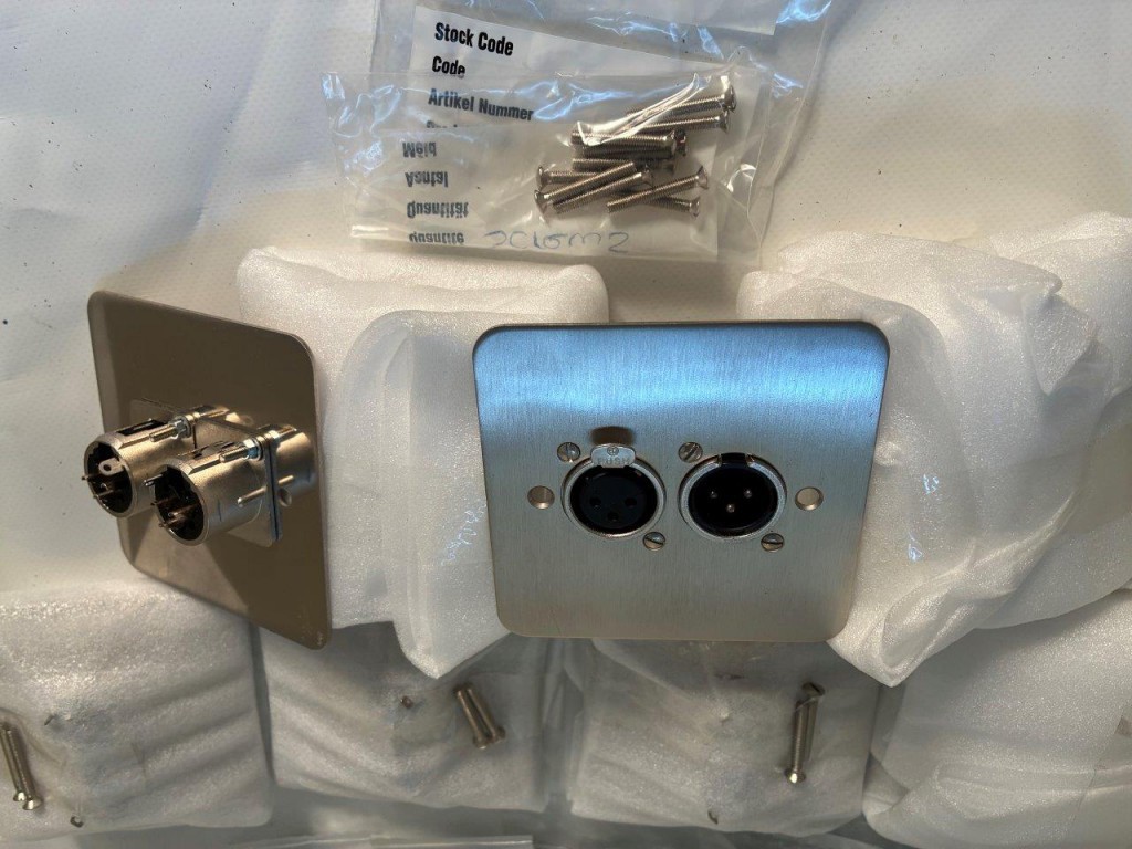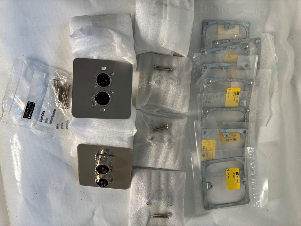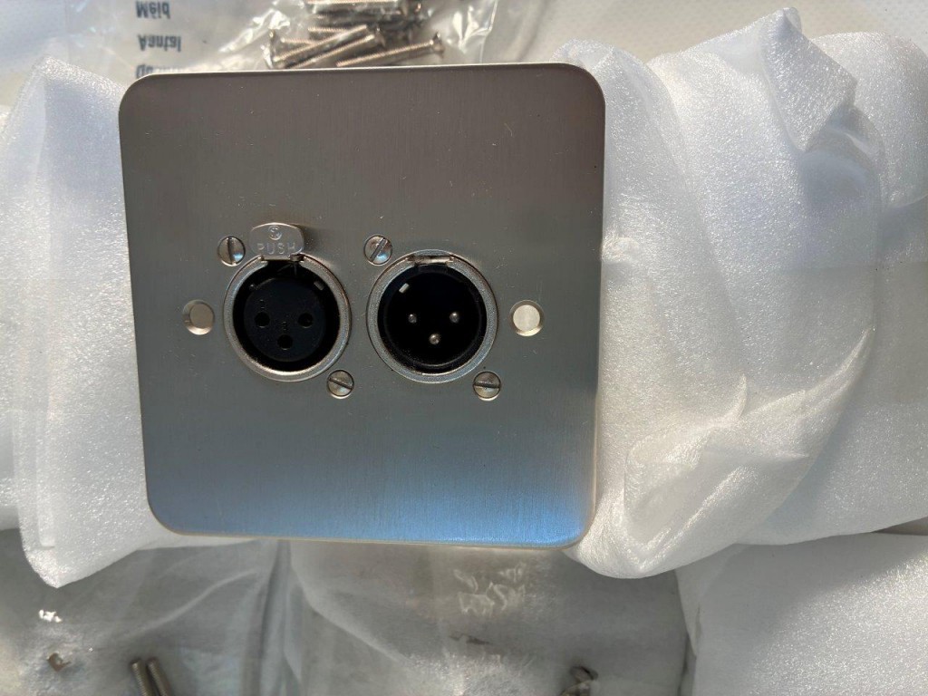 XLR face plates [x8] with mounting screws and rear bracket Neutrik male female XLR Canford Audio EIGHT plates image shows two