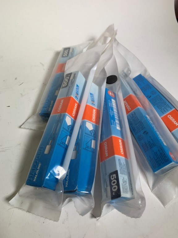 Osram 500w halogen lamps x6: Osram 64702 - 400W=500W 230V 118mm Tungsten R7s Halogen Linear Replaces 500W All NEW/SEALED