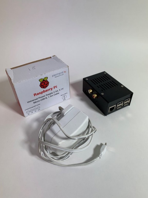 Raspberry Pi mini computer (previously used as stream receiver) HDMI out with pro audio boards and mini SD card slots for memory