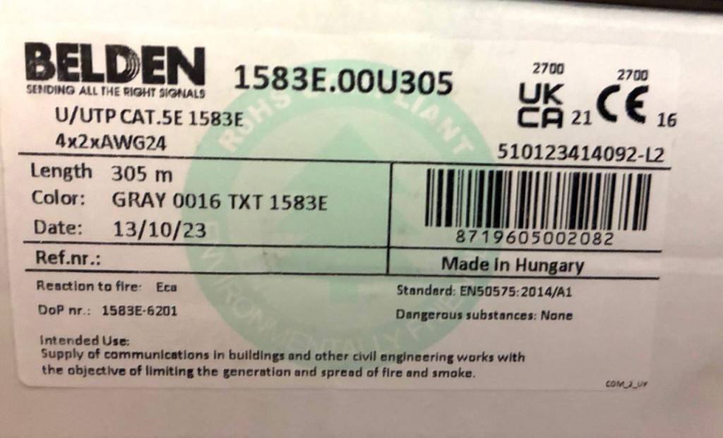NEW box Belden Cat5e UTP PVC Grey 305m 100ft