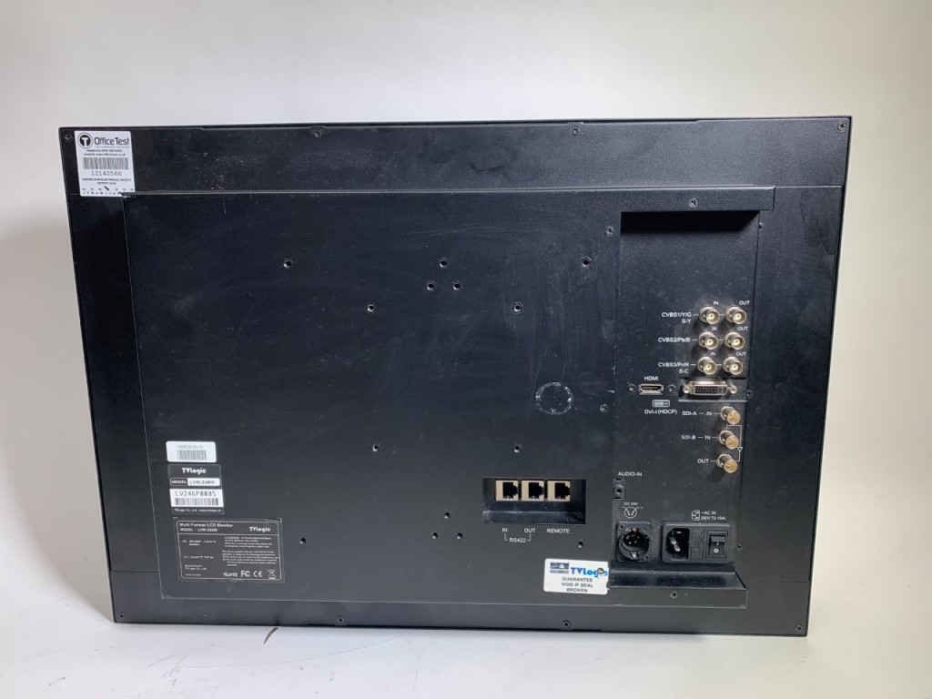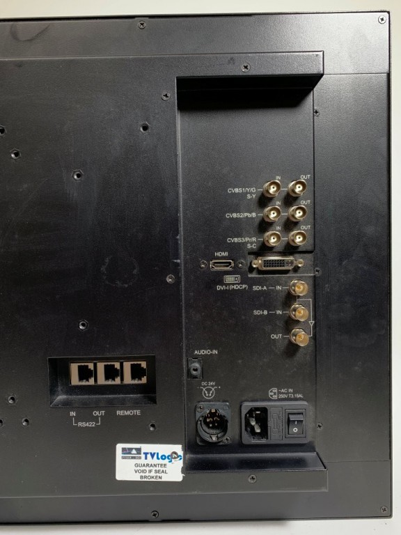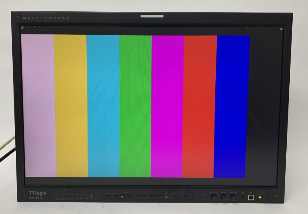 TV Logic LVM-246W 24in HD LCD Monitor. SD/HD/3G-SDI, HDMI, DVI, Component Video, S-Video and CVBS. Also shows WFM/VEX, TC etc