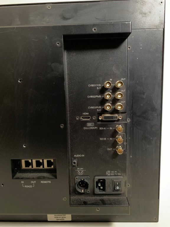 TV Logic LVM-246W 24in HD LCD Monitor. SD/HD/3G-SDI, HDMI, DVI, Component Video, S-Video and CVBS. Also shows WFM/VEX, TC etc