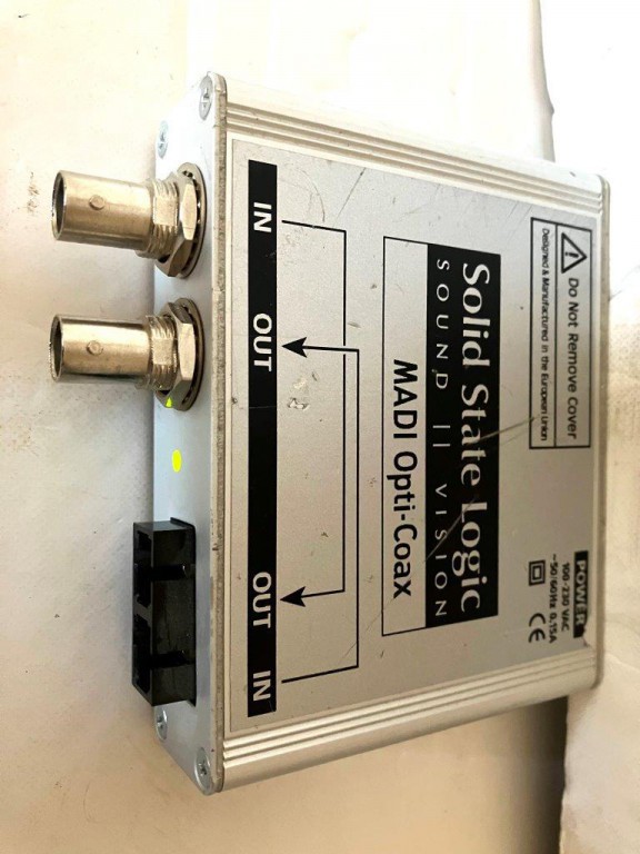 SSL MADI Opti-Coax format converter for up to 64 audio channels bi-directionally (64 in x 64 out; 32 channels @ 96 kHz) between MADI Optical and MADI Coaxial formats.